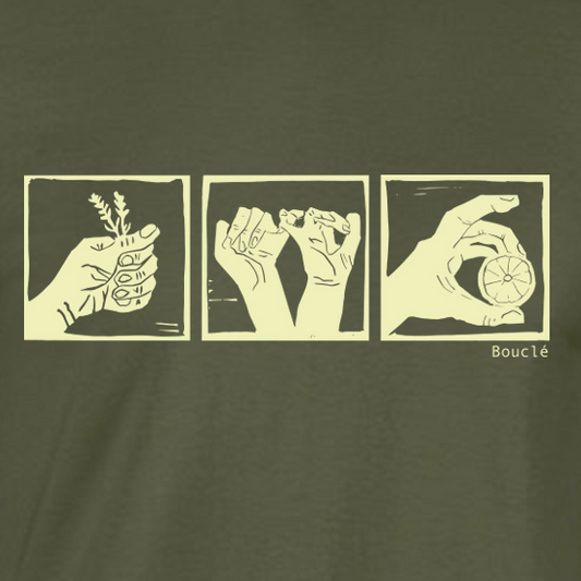 Woodcut Trio Screen Printed Olive Green Short Sleeved T-Shirt