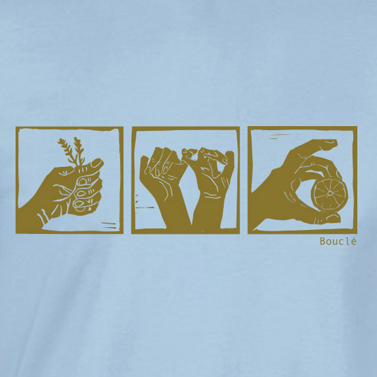 Woodcut Trio Screen Printed Light Blue Short Sleeved T-Shirt
