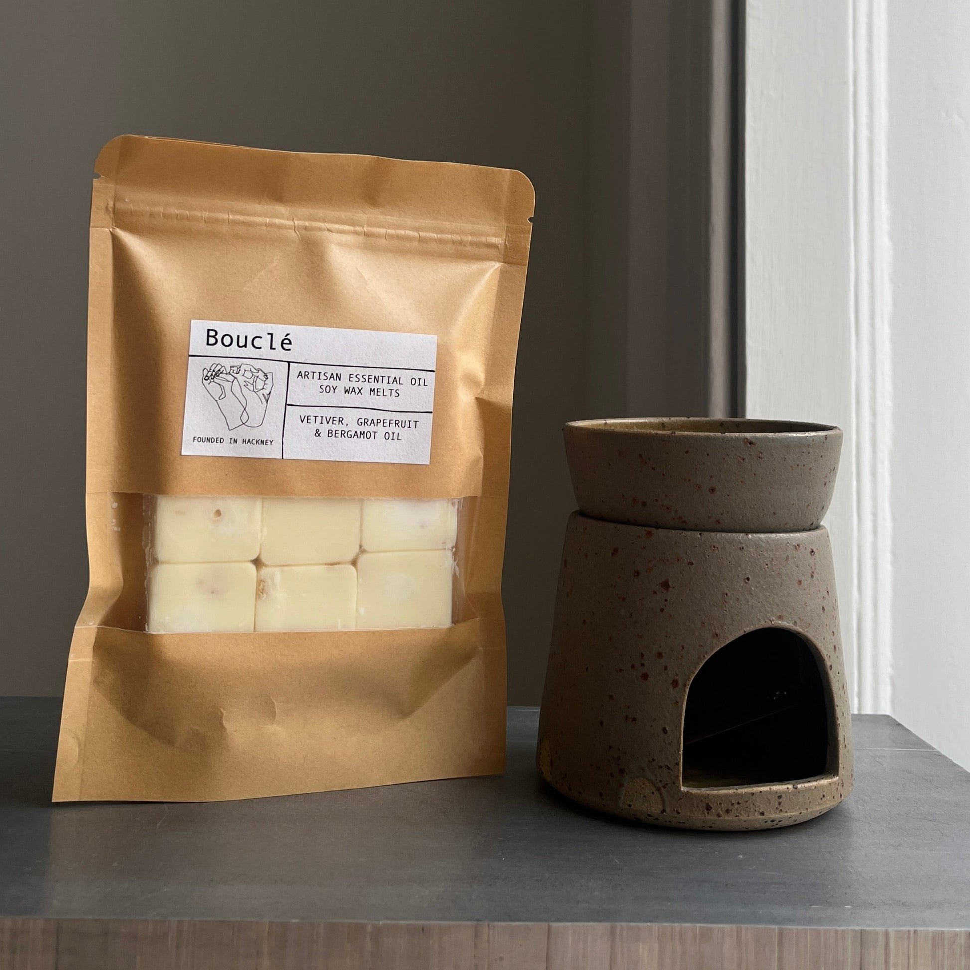 We have collaborated with Faye Twinn at Twinn Pottery to bring new exclusive hand thrown ceramic oil burners to Bouclé. To create the perfect gift set we have put together the beautiful burners alongside a set of 9 essential oil wax melts.