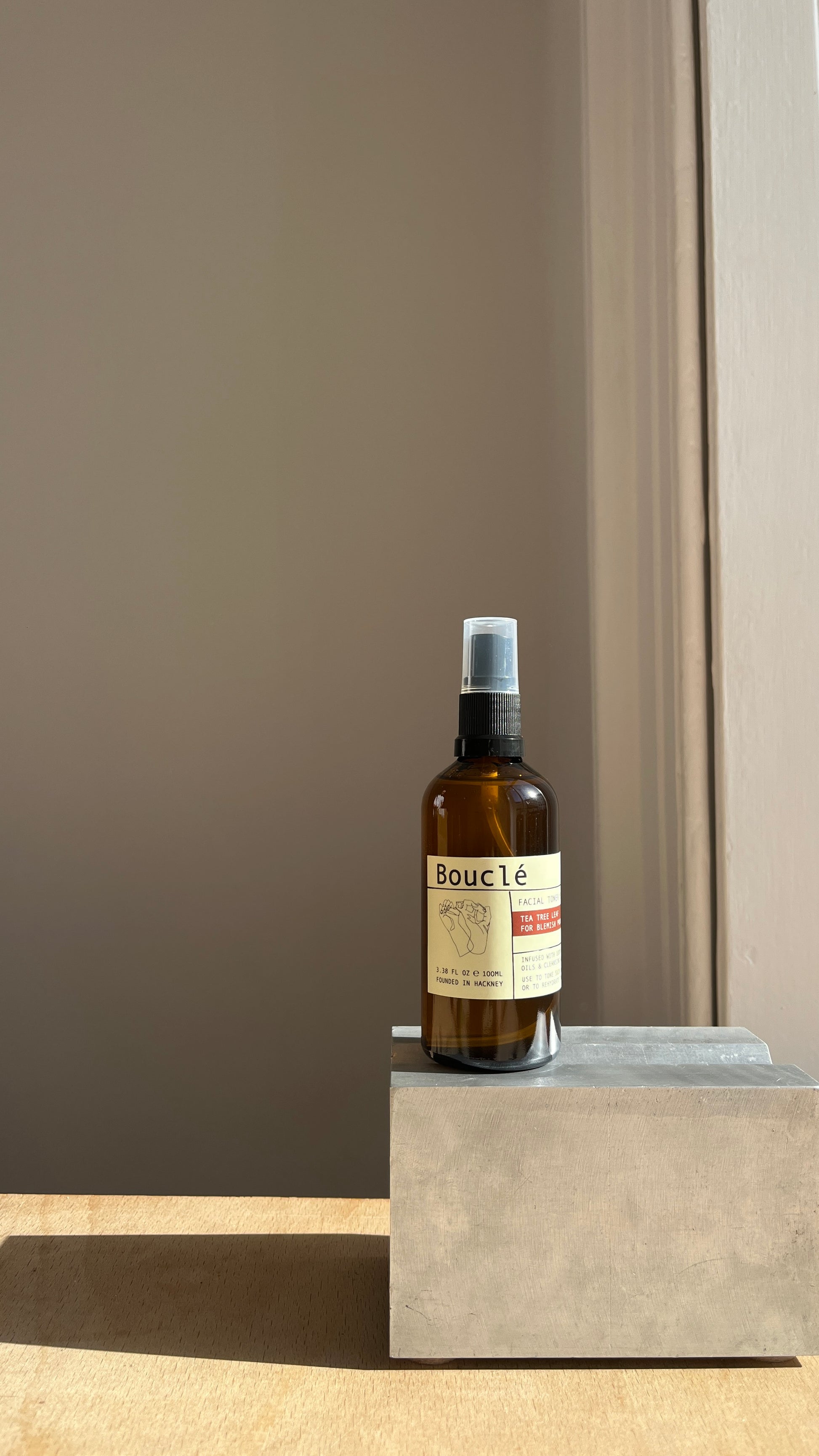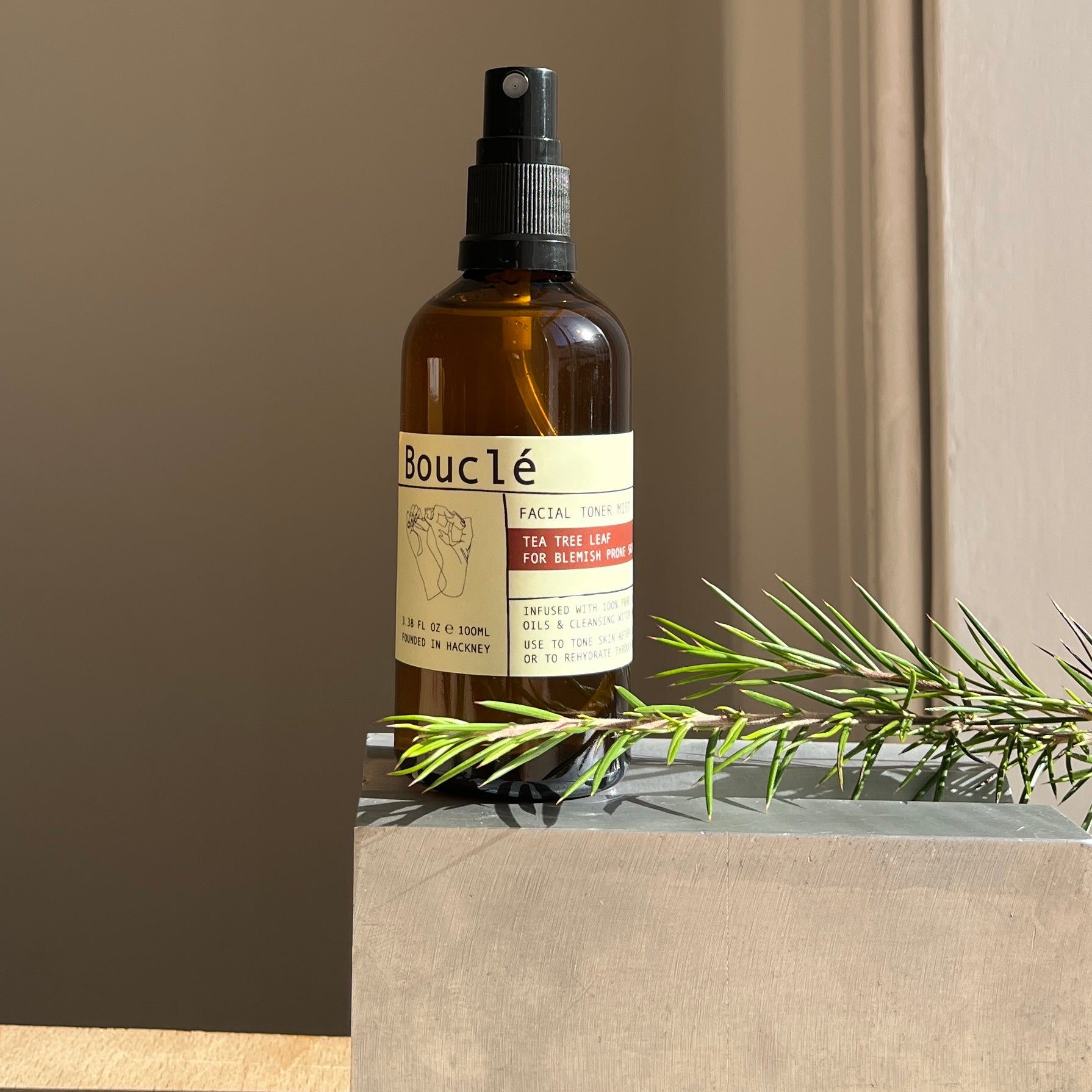 100ml facial toner mist in a recyclable amber glass bottle.